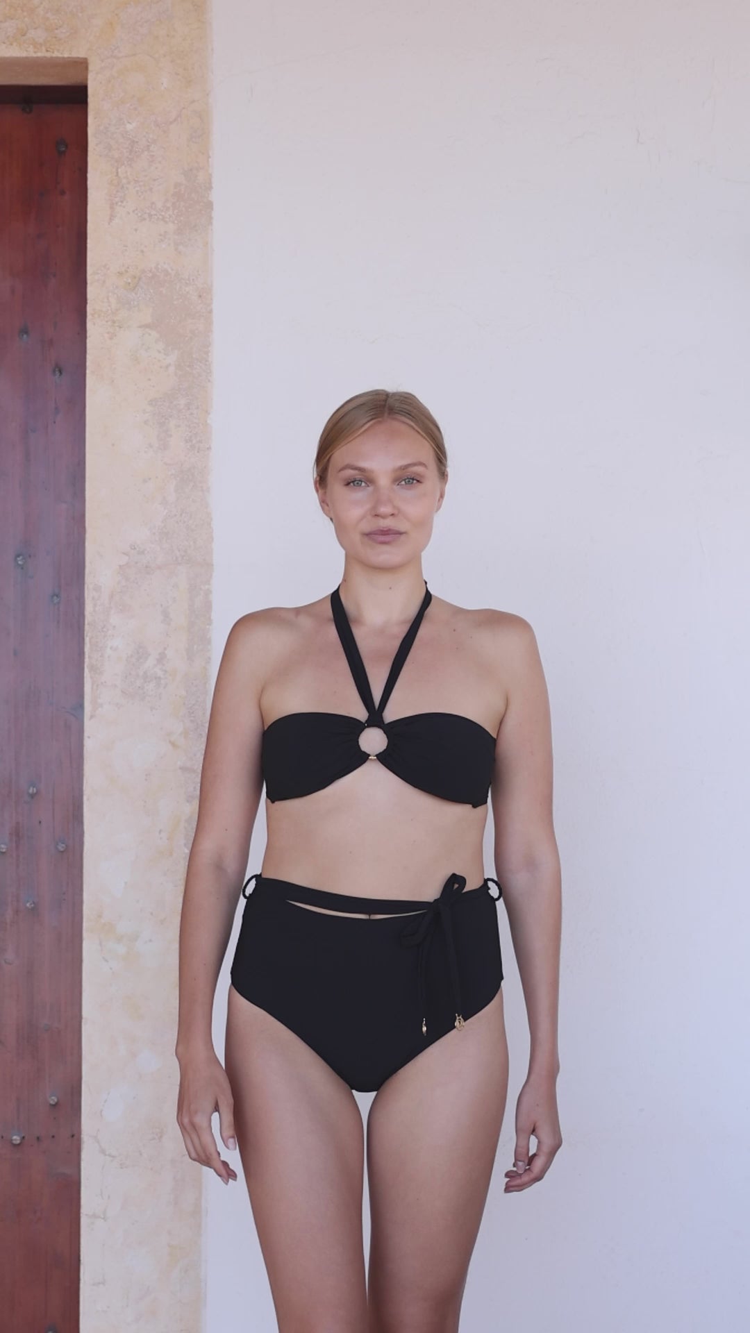 Luce y siéntete impecable con el top RAN BANDEAU NEGRO, diseñado para realzar tu figura con una comodidad superior. Elaborado con poliamida italiana reciclada y fibra patentada Xtra Life LYCRA, ofrece protección UV UPF 50+ y cuenta con las certificaciones OEKO-tex y GRS, que garantizan su ausencia de sustancias químicas peligrosas. Disfruta de un look versátil con tirantes ajustables para el cuello y relleno extraíble para una sujeción óptima durante todo el día. Luce la elegancia.