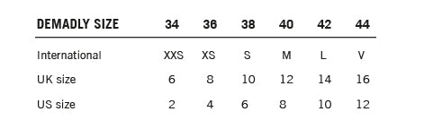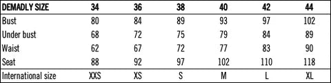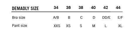Use our size chart to discover the best fit for your body. Each Demadly piece is designed to flatter and support—consult the guide below to feel confident and comfortable in your swimwear.